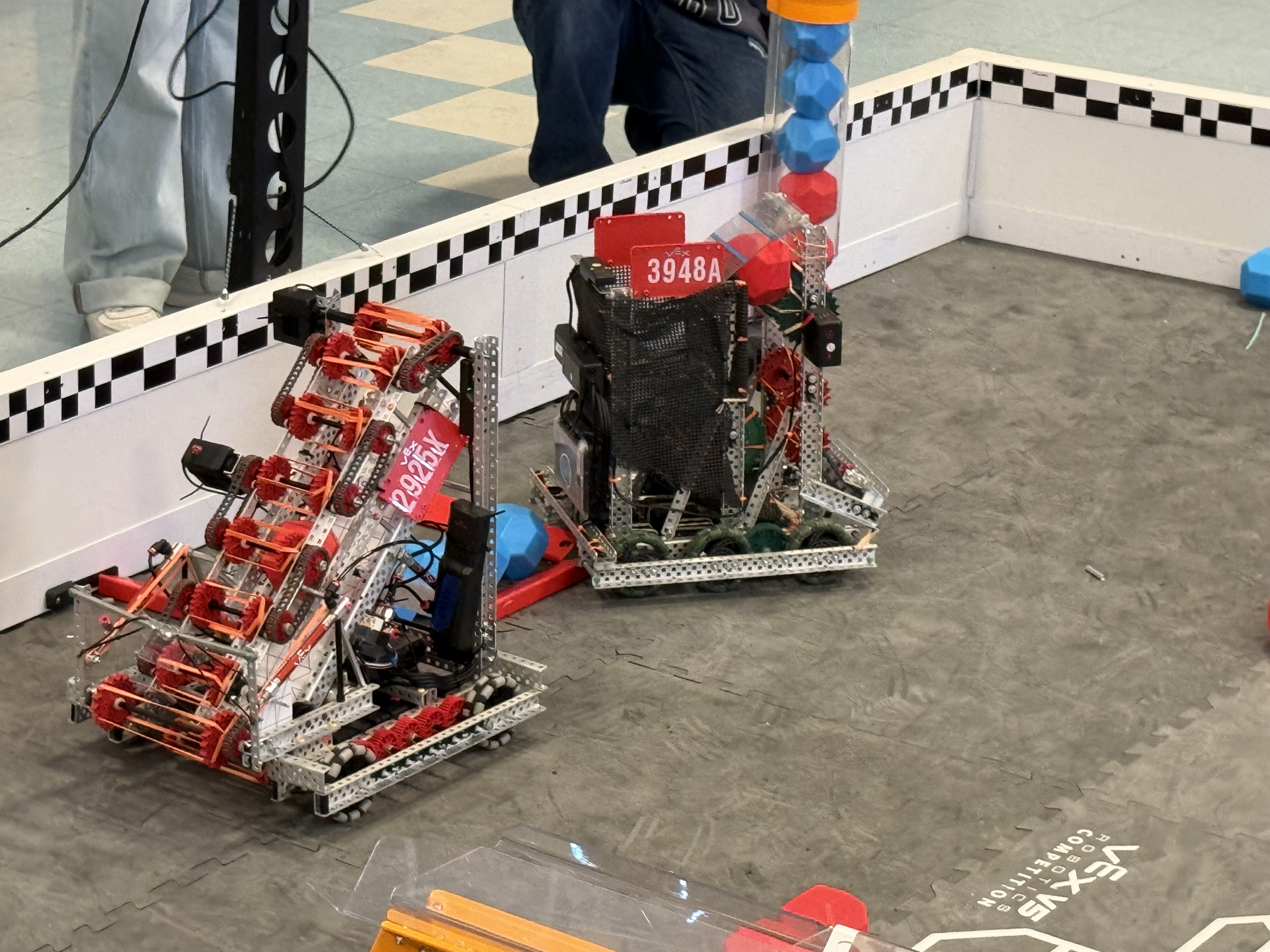 Team 1729X placed 35th in tournament and 18th in skills today, 09/27/2025. We noticed many interesting and important things about our robot and other robots. We ran into a few issues as well, including one of our motors dying right before matches started, our chain breaking in multiple places during matches, basically decomissioning our robot for the remainder, and battery cables not being fully plugged in, and causing our robot to turn off.
